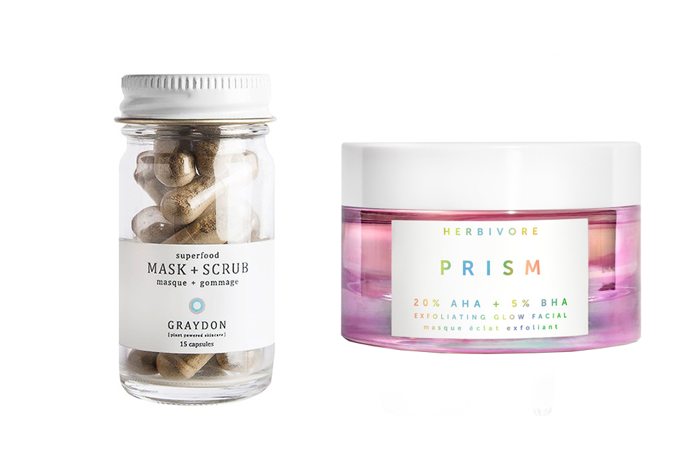 Graydon Superfood Mask + Scrub, $39, and Herbivore Prism Botanical AHA + BHA Exfoliating Glow Facial, $42