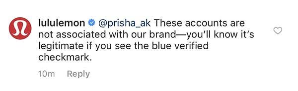 In reply to people asking about the suspect accounts, the real Lululemon (that would be @lululemon) issued a fact check:
