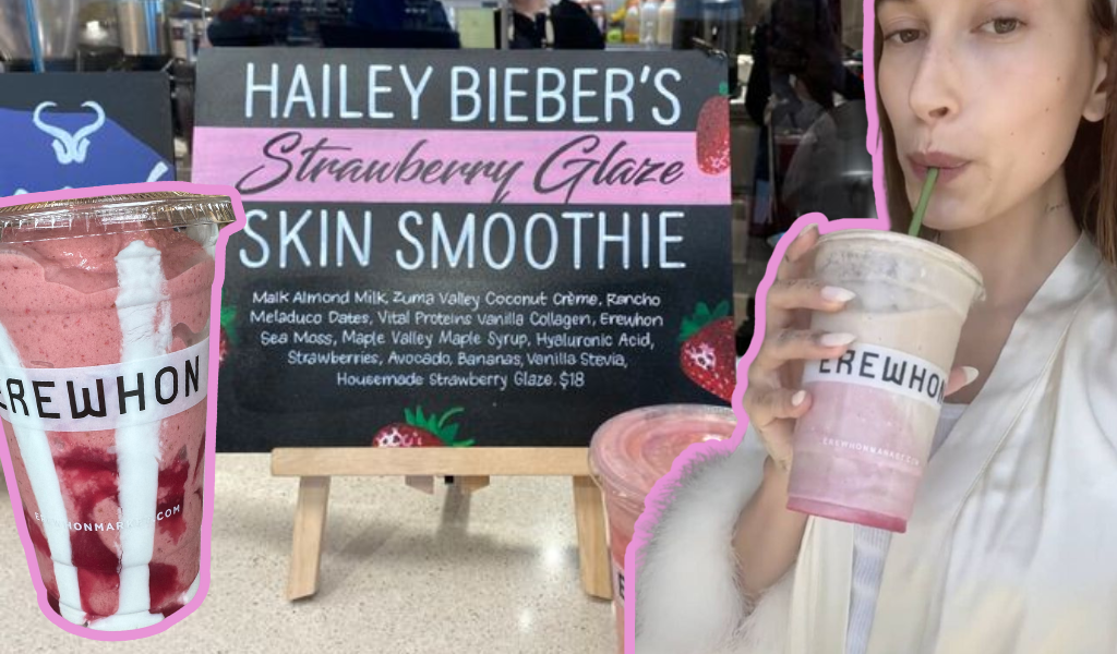 The hype around Bieber’s strawberry glaze skin smoothie rose during the drama with Selena Gomez last year. Erewhon recently added the drink to its permanent menu.