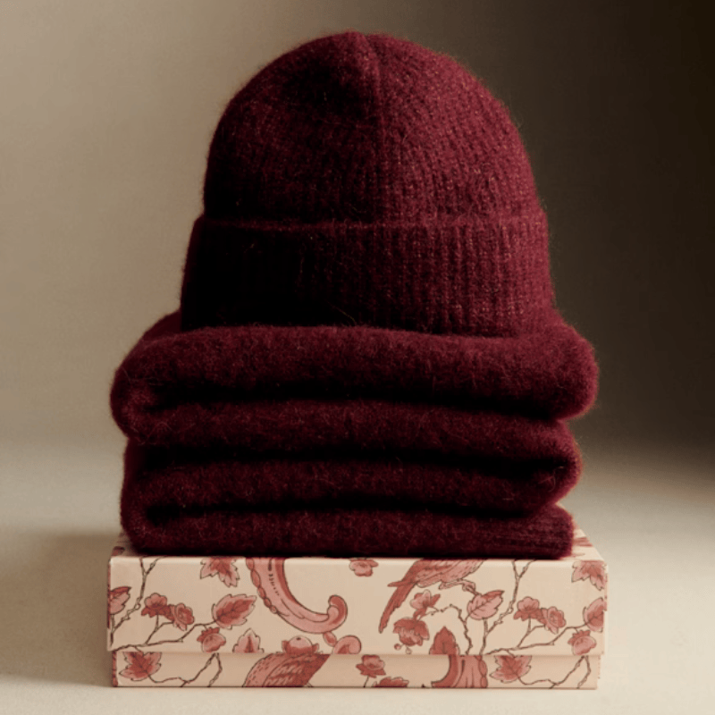 Sézane Beanie and Scarf Gift Set, in Burgundy, $159, at sezane.ca