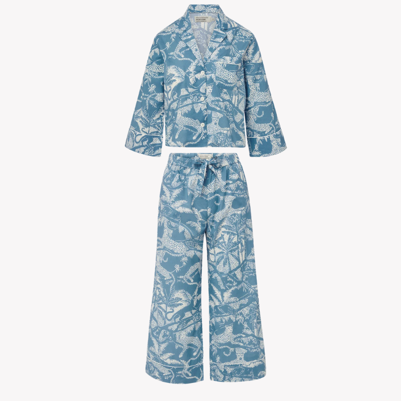 What makes it cute: The unexpected leopard pattern in “jasper blue” makes this machine-washable organic cotton; this PJ set is so figure-flattering you might want to wear it out! Just add blazer and heels.